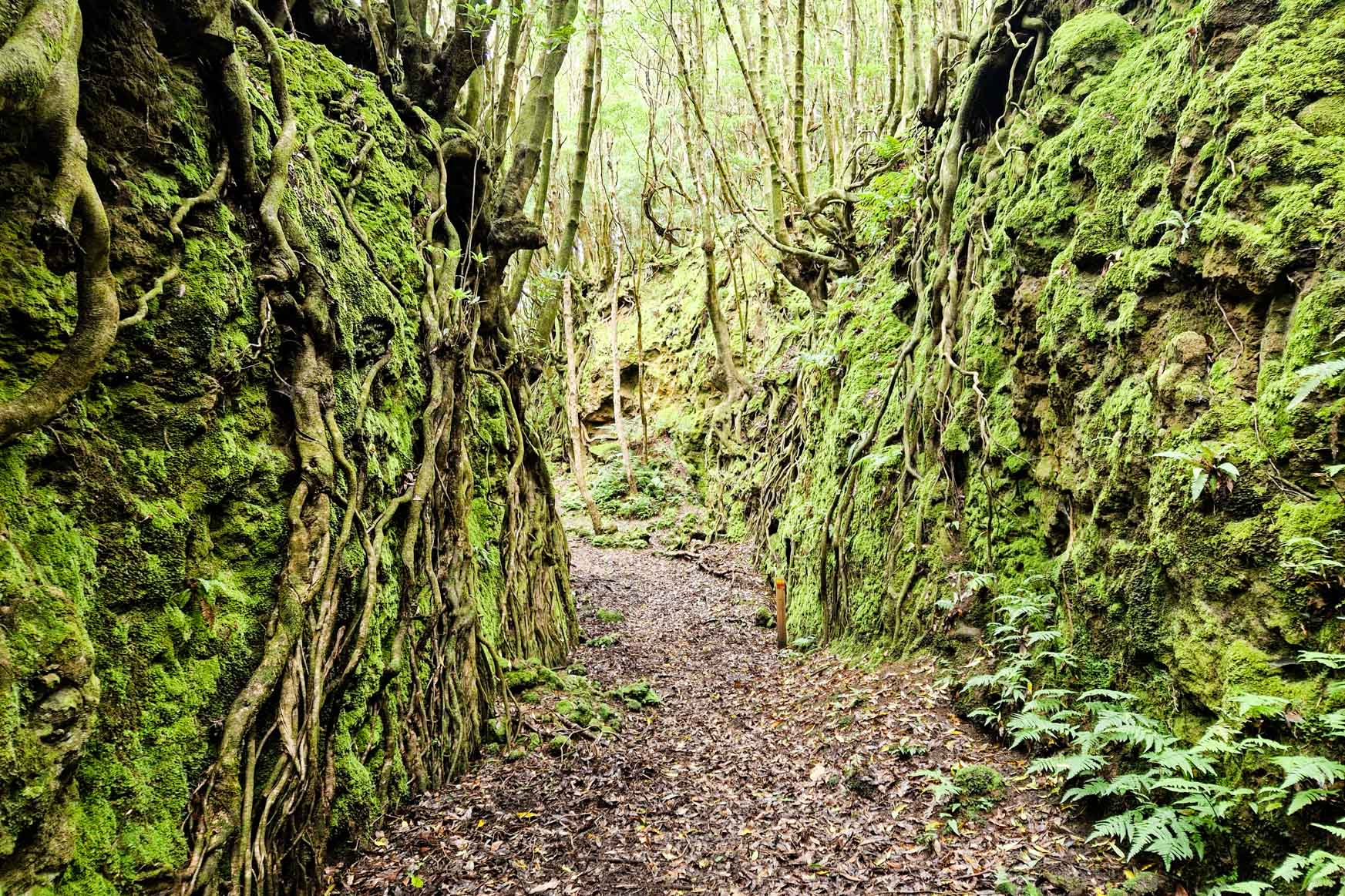 Hohlweg mit hängenden Wurzeln